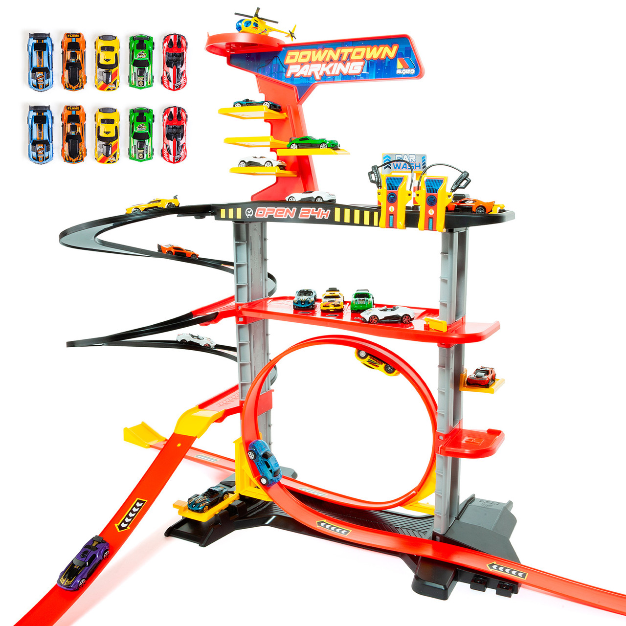 Downtown Spielzeug-Parkhaus mit 2 Etagen und 1 Looping + 10 Autos