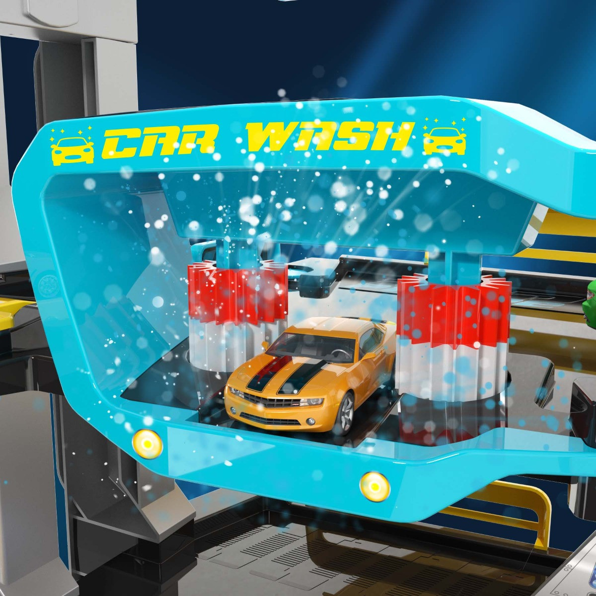 • Mit automatischem Aufzug, Hubschrauberlandeplatz, Autowaschanlage, Werkstatt, Tankstelle und vielen weiteren Zubehörteilen für ein komplettes Spielerlebnis.