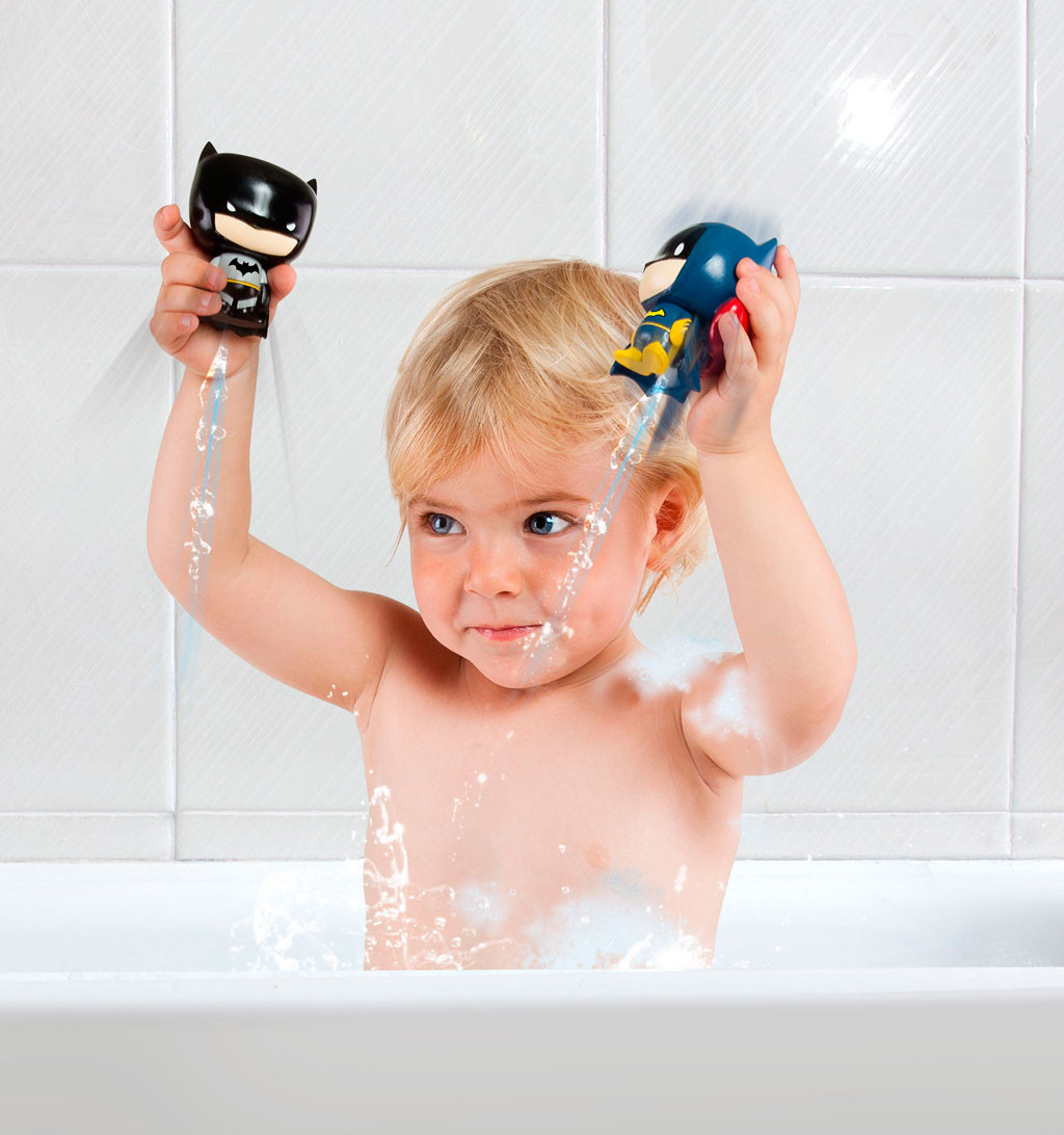 Puppen Wasserpistole der Gerechtigkeitsliga. ¡Spielen Sie ohne Angst mit Ihren Superhelden in der Badewanne!